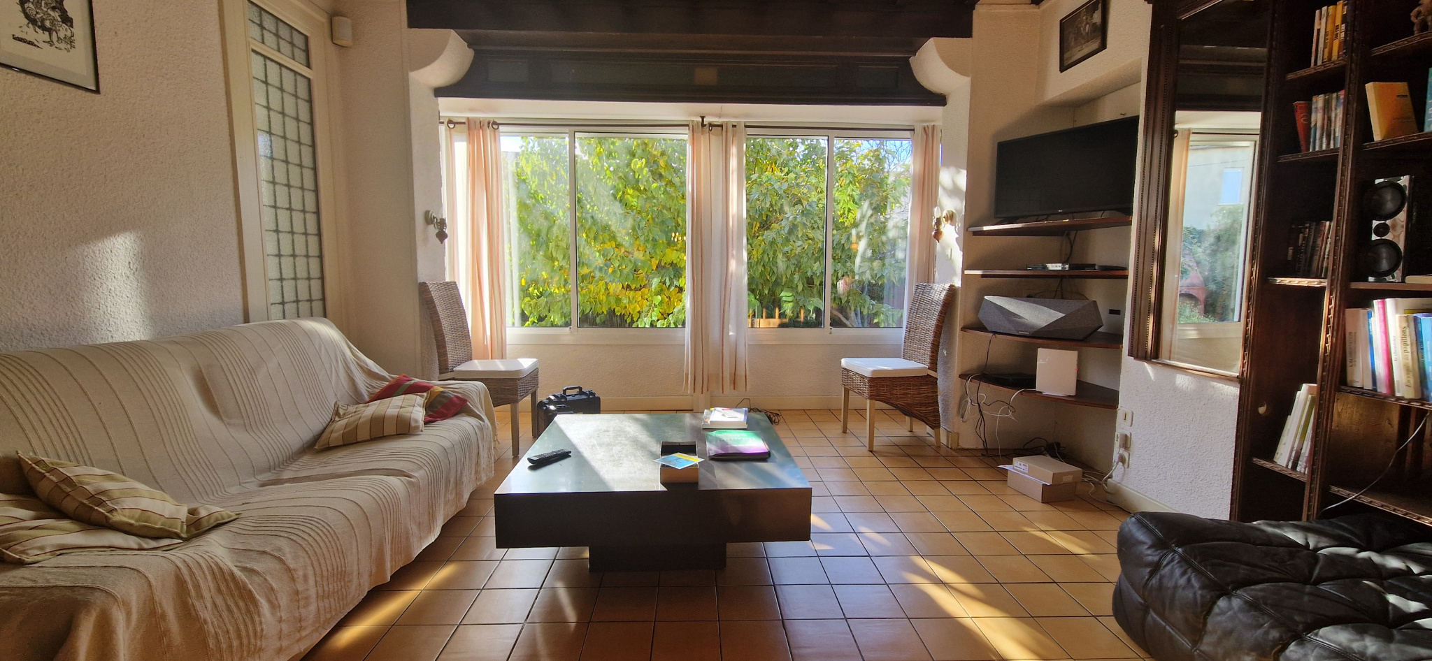 Au rez-de-chaussée : bel espace de vie lumineux avec véranda, cuisine indépendante, 1 chambre et 1 salle d'eau.
